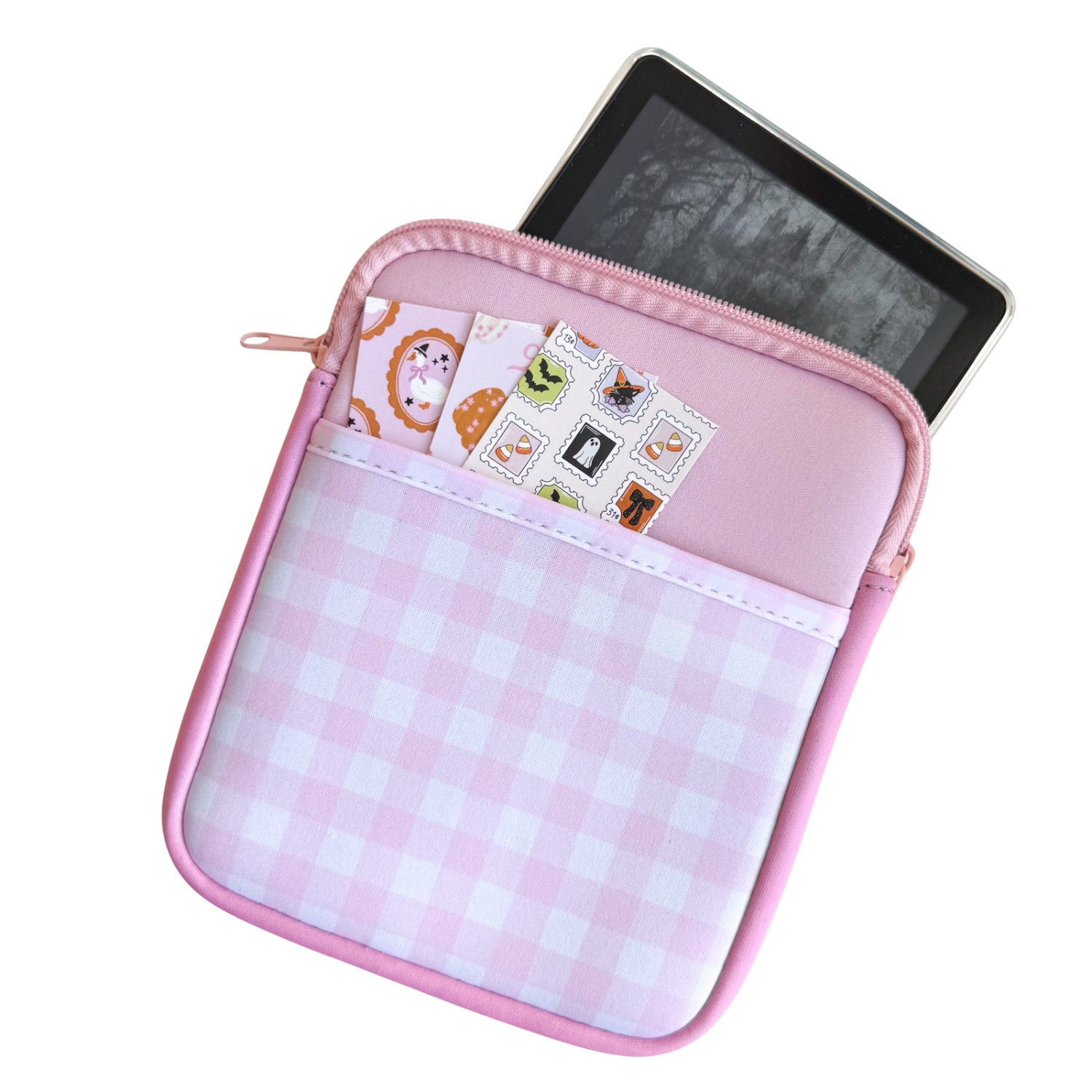 Keep your e-reader safe and stylish with our adorable padded sleeves. Designed with a secure zip closure and a handy front pocket, they protect your device from bumps and scratches while offering space for accessories. Perfect for on-the-go readers!